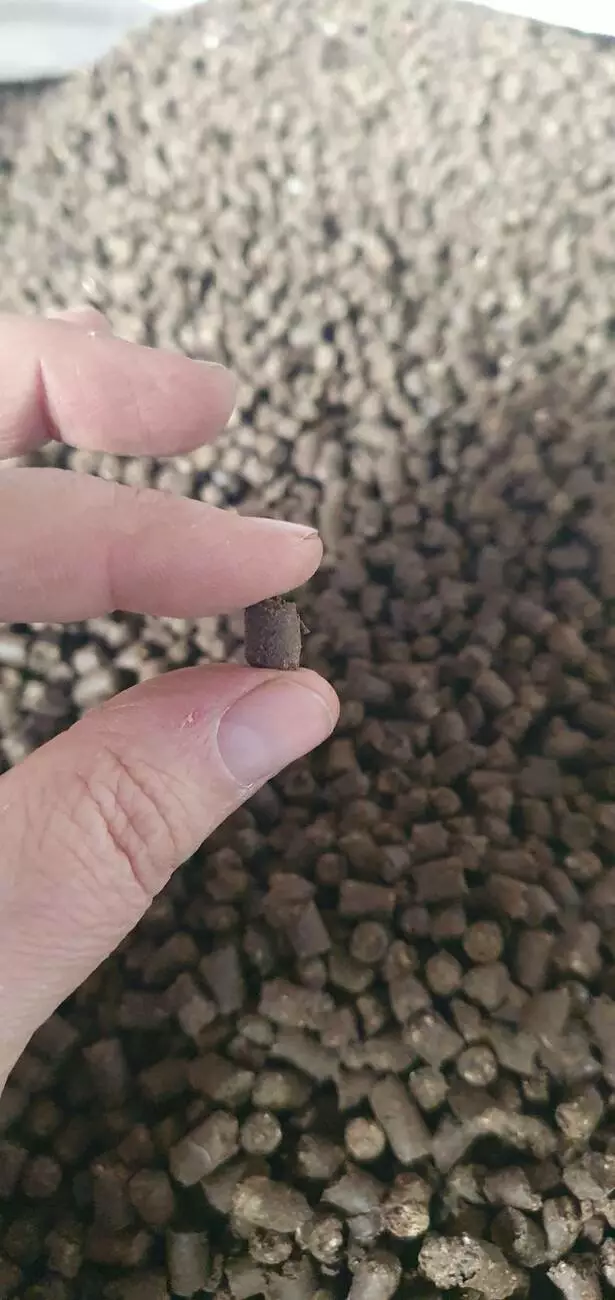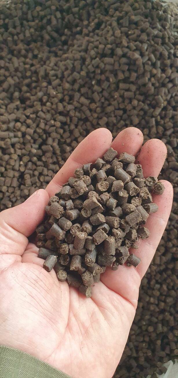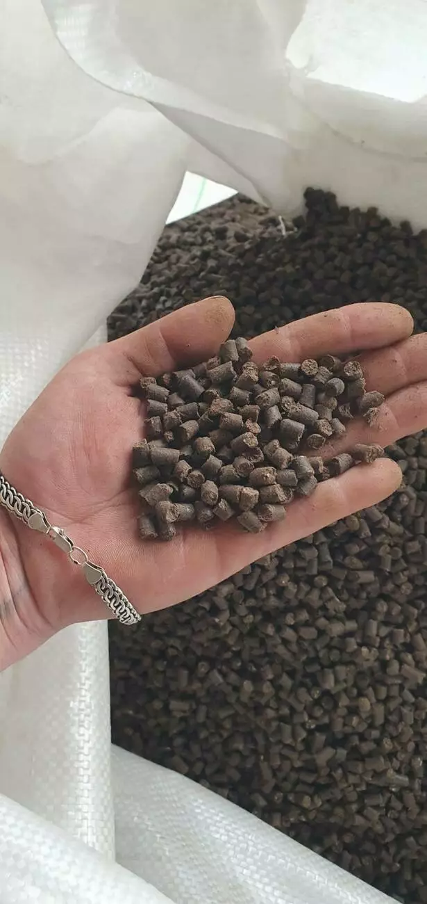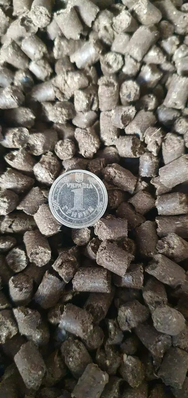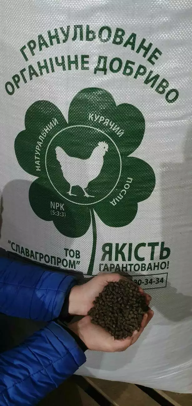 Гранульоване органічне добриво на основі курячого посліду з вмістом вуглецю, азоту, калію та фосфору.